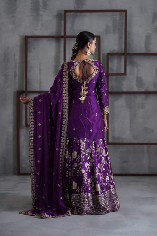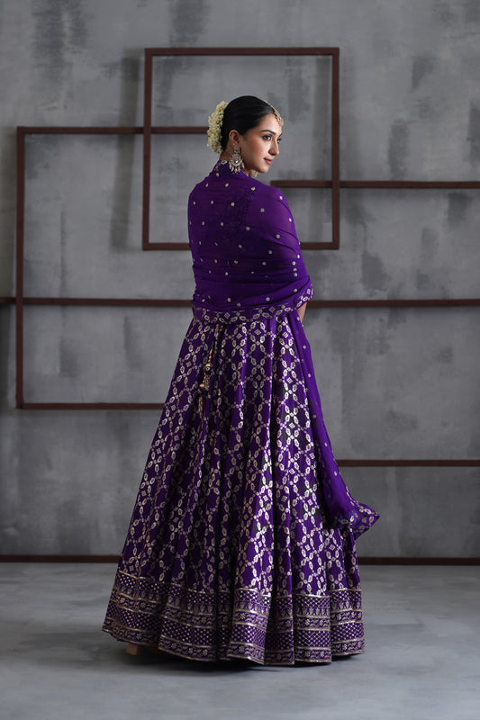 Purple Embroidered Blouse, Banarsi Lehanga and Dupatta