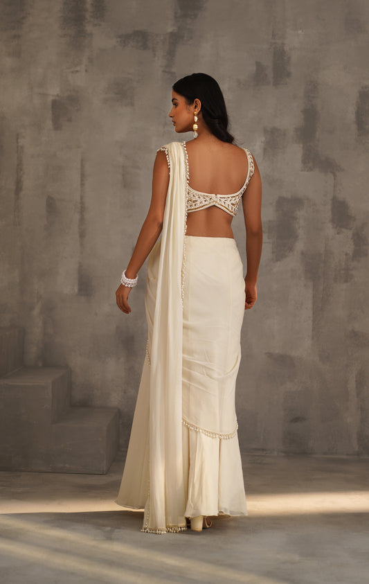 Ivory Embroidered Blouse and Draped Saree