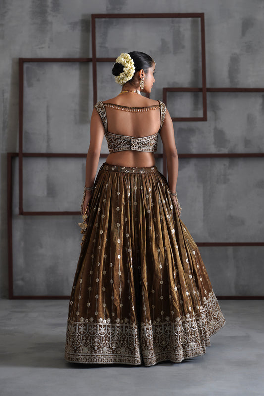 Mustard Embroidered Kurti, Brocade Lehenga and Dupatta